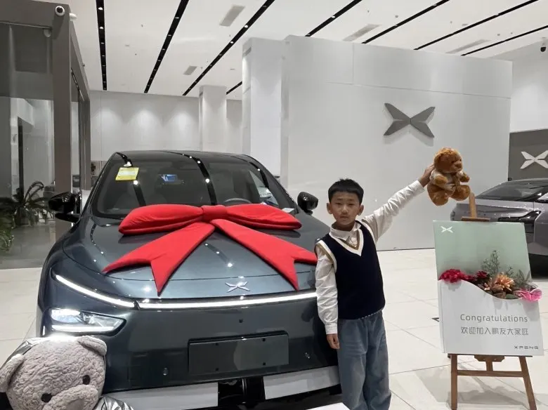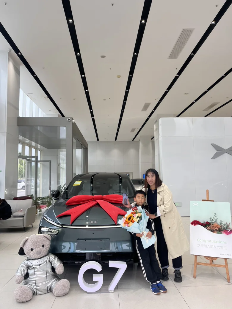 #我的提车作业# 一家三口最想换车的一直是这位小朋友,得知可以提车延时课都逃掉了,一到小鹏立马问哪辆是我们的?开开心心的奔赴后座,没错,是后座。
