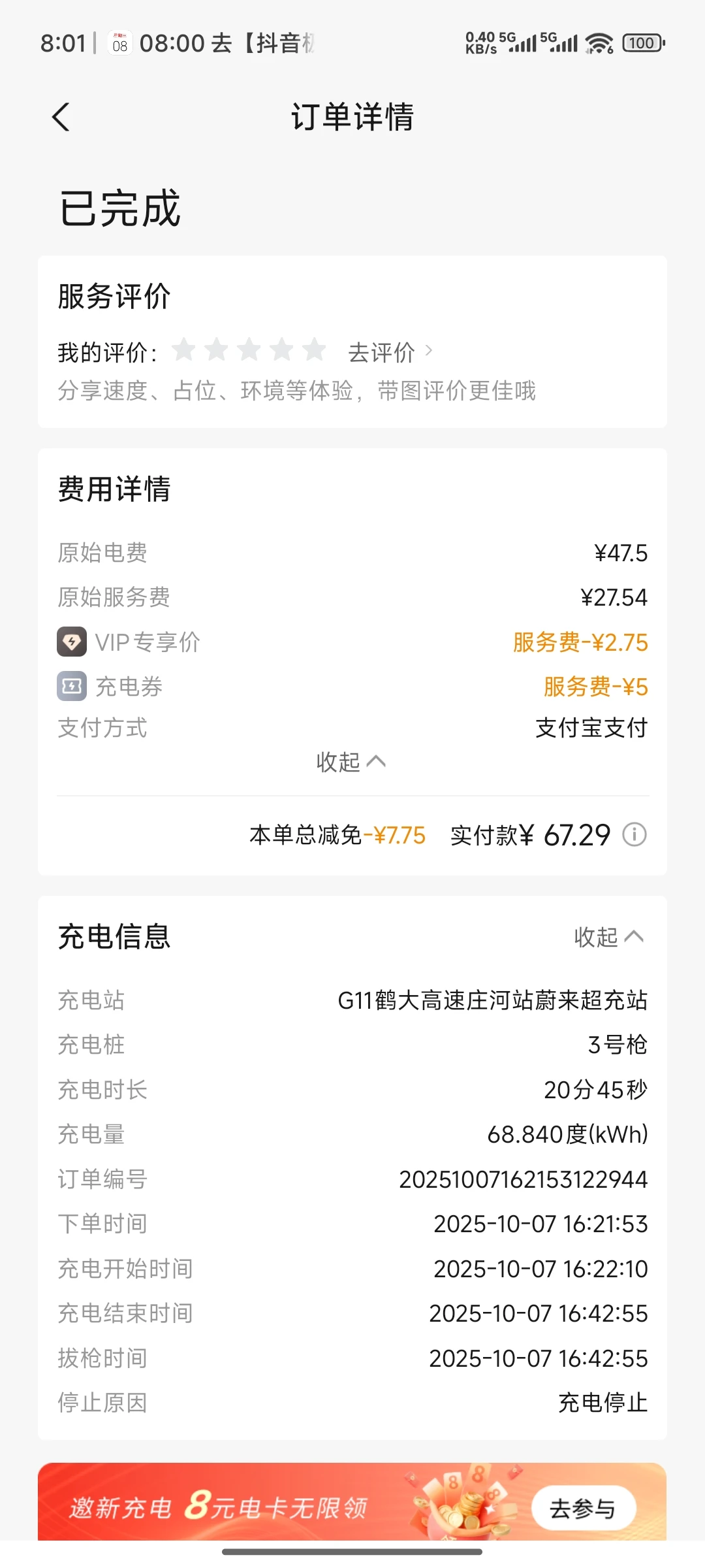 超充真的好快,13%到95%只要20分钟。再也没有续航焦虑咯。