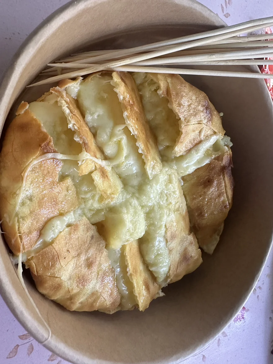 在老街闲逛时,顺手买了块榴莲饼。咬开第一口就惊喜,是实实在在的榴莲果肉香。