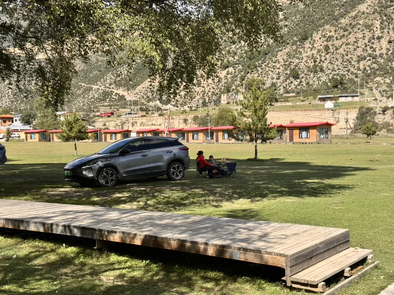 网红打卡点,扎尕那,必不能少,景区里充电桩很少很少,不过热情的藏族民宿老板,很爽快答应让我用随车充充满,让后续挑战的江迭公路毫无压力。