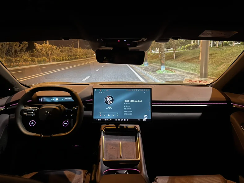 老P7选的黑内,新P7的紫内+铝饰板+氛围灯,质感提升很多!