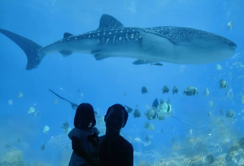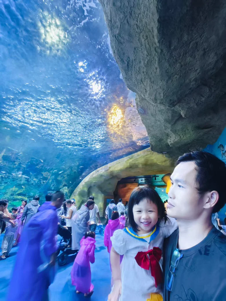 抵达珠海长隆海洋王国,仿佛瞬间穿越到蔚蓝梦境。色彩斑斓的“海洋大街”上,巨型LED天幕播放着变幻万千的海底奇观。在“鲸鲨馆”,63米的鲸鲨幕墙带来震撼视觉冲击,深蓝光影将氛围感瞬间拉满。站在高达8.3米的巨型观赏窗前,看着鲸鲨优雅滑行,五彩鱼群环绕,构成和谐共生的壮丽画卷。