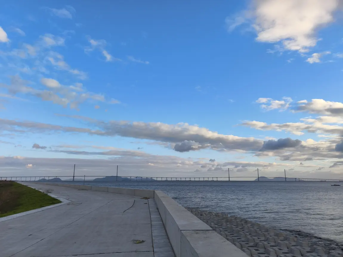 p7+带着我去骑行,环抱着黄茅海大桥最佳观景点海边沿线,再到珠海金湾平沙新城中心公园的路线骑行,绝对是绿色宝藏打卡点,可以近看黄茅海大桥,一览大海无边无尽,可以拥抱公园大草坪露营,湖边垂钓,累了也可享受免费天然地热温泉泡脚jio。