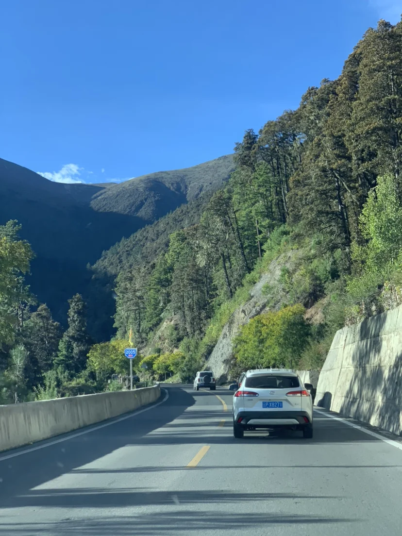 ⚠️香格去梅里雪山的214国道一路景色很美,从3千多海拔降到2千多再升到4千海拔,车子开在峡谷的山腰间。但也需要注意安全,连续拐弯、下坡、落石路段比较多,驾驶时间比较长(3h),晚上行使注意安全。