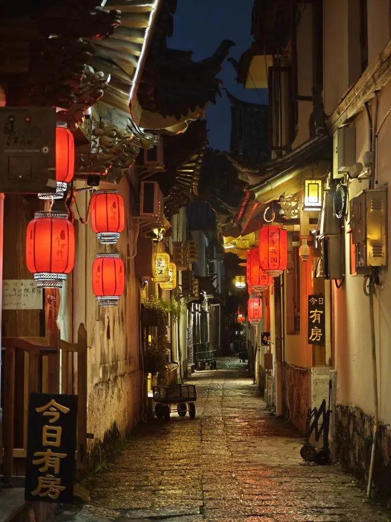 丽江古镇的夜景路过看到觉得非常有氛围,随手一拍