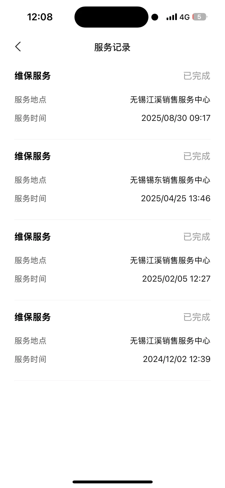 进宫四次,其中一次保养,修理了三次,一次意外不需要修理。