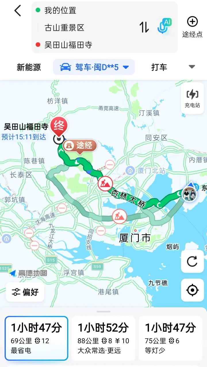 从厦门出发定位:吴山福田寺,70km左右,但是导航显示要2个小时左右,因为2/3都是山路,非常绕,后续还有一段比较难开的小路,所以这趟路程,新手司机还是不建议呀!