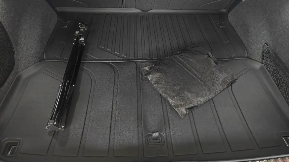 - TPE后备箱垫+PET二排背板垫:选TPE材质的后备箱垫准没错!防水防污,平时放行李箱、杂物不会弄脏原车地毯,露营带的装备弄脏了,用湿抹布一擦就干净。二排背板贴了PET材质的保护垫,防止后排乘客踢到背板留下划痕,两款都是专车专用,贴合度100%,不会翘边。