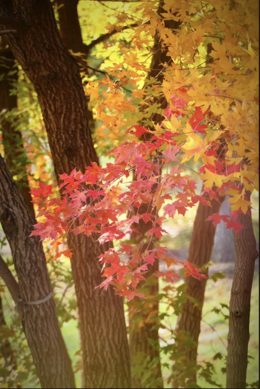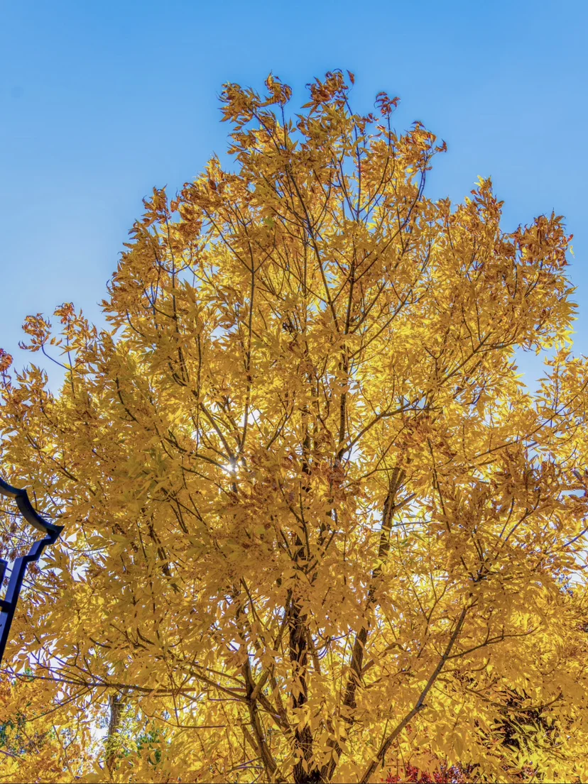 (二)往里走,秋天的红叶渐渐成了视线焦点。水塘边、小山坡上,银杏、红枫虽不算高大,却美得恰到好处。有的整树火红,像燃烧的小灯笼般亮眼;更多的树上,橙黄、橘红、深红交织,宛如打翻的调色盘。我停在树下,看着阳光穿透红叶,暖意在周身蔓延,小鹏P5的全景天幕仿佛还带着户外的温度,将这份秋日限定的美牢牢锁住。