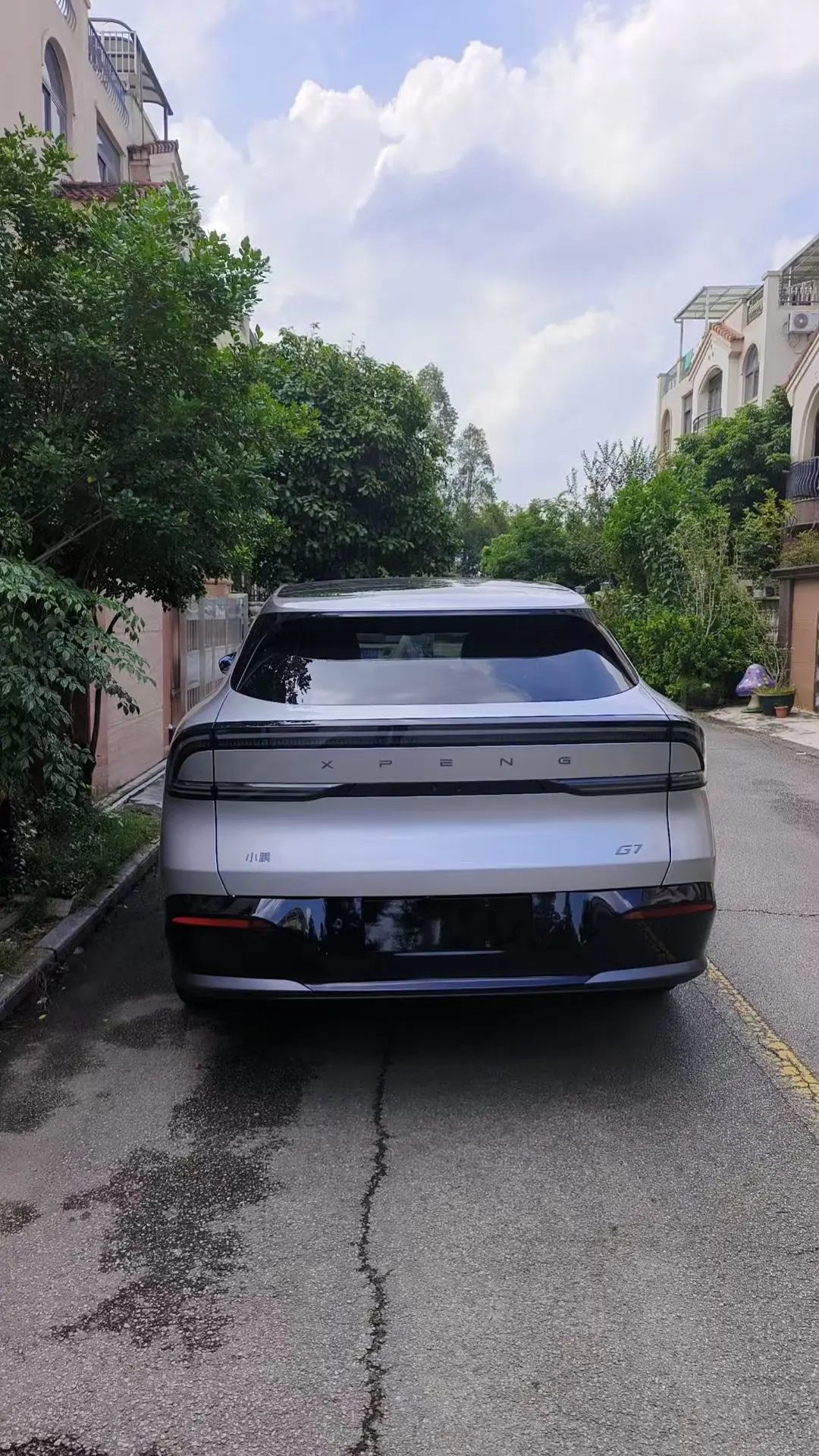 终于等到我的小鹏G7!之前刷到不少吐槽车尾的声音,心里还犯过嘀咕,直到亲眼见了现车才懂——贯穿式尾灯的纹理细节、微微上翘的小鸭尾,搭配底部扩散器,紧凑又有运动感,比照片里耐看太多了。