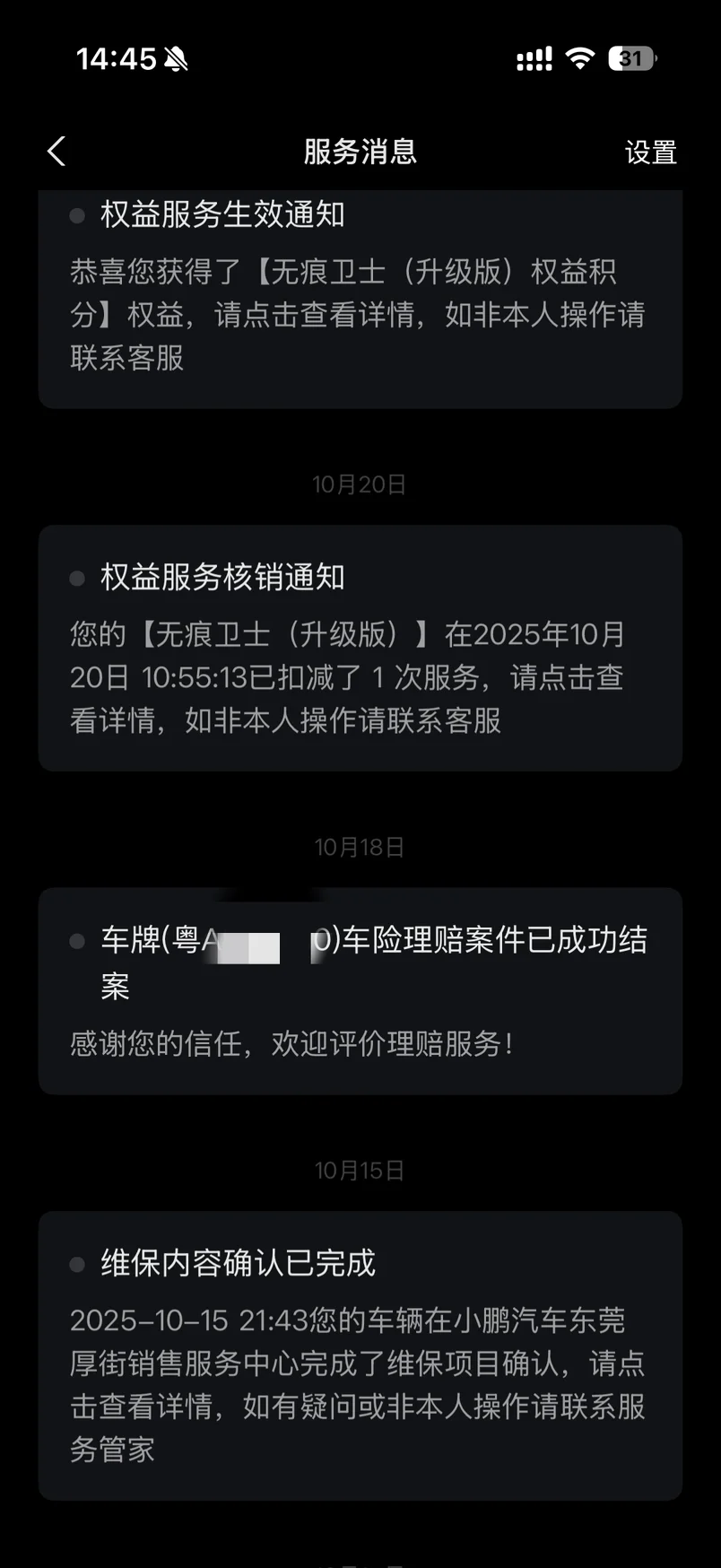 预约进店,售后的服务人员帮忙定损(在这里吐槽一下感觉小鹏的车脆皮脆皮的,轻轻一下就凹进去了),定损很专业没什么争论,后续就是保险公司介入,一切顺利解决啦