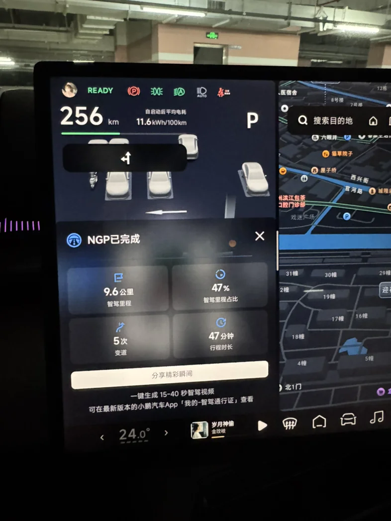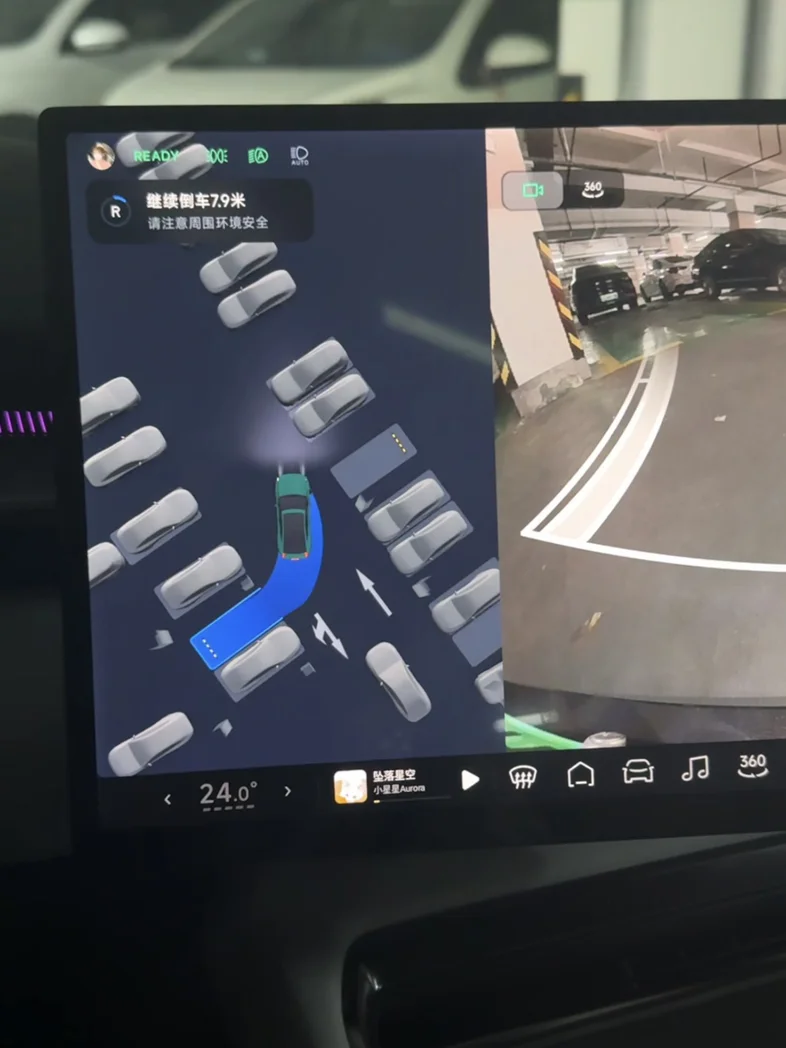 有了前面两次的丝滑泊车,第三次泊车我觉得它会停的比我快,再次使用又有了新的认知。旁边有车在等我泊车,被小P识别到了,突然给我加速了一下,给我吓一跳😂不知道是不是真的在做礼让,有待后续多次认证,或者有鹏友知道的可以解答一下;整一套下来也是一把完成✅现在我都让他自己停车啦