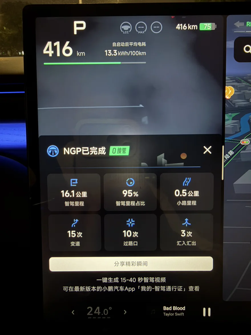 更新到5.7.8以后也是迫不及待的开始尝试NGP和车位到车位焕新版。虽然没有之前版本的NGP作为对照,但是我觉得这个版本的NGP让人感觉非常的安心,跟车距离、变道时机都恰到好处,也是很快就解锁了零接管的成就。在变道超车的同时会直接加速,路中间有施工椎桶也可以丝滑躲过,也是着实是惊艳到我了。车位到车位功能总体来说还可以可以很准确的沿着学习的路线自己规划到停车场的车位,但是还有一些需要改进的地方,在停车场中驾驶的时候会离路沿和柱子距离比较近,感觉有点紧张的,另外就是在进入停车场前会莫名的左右摆动方向,体验一般,期待以后的更新。