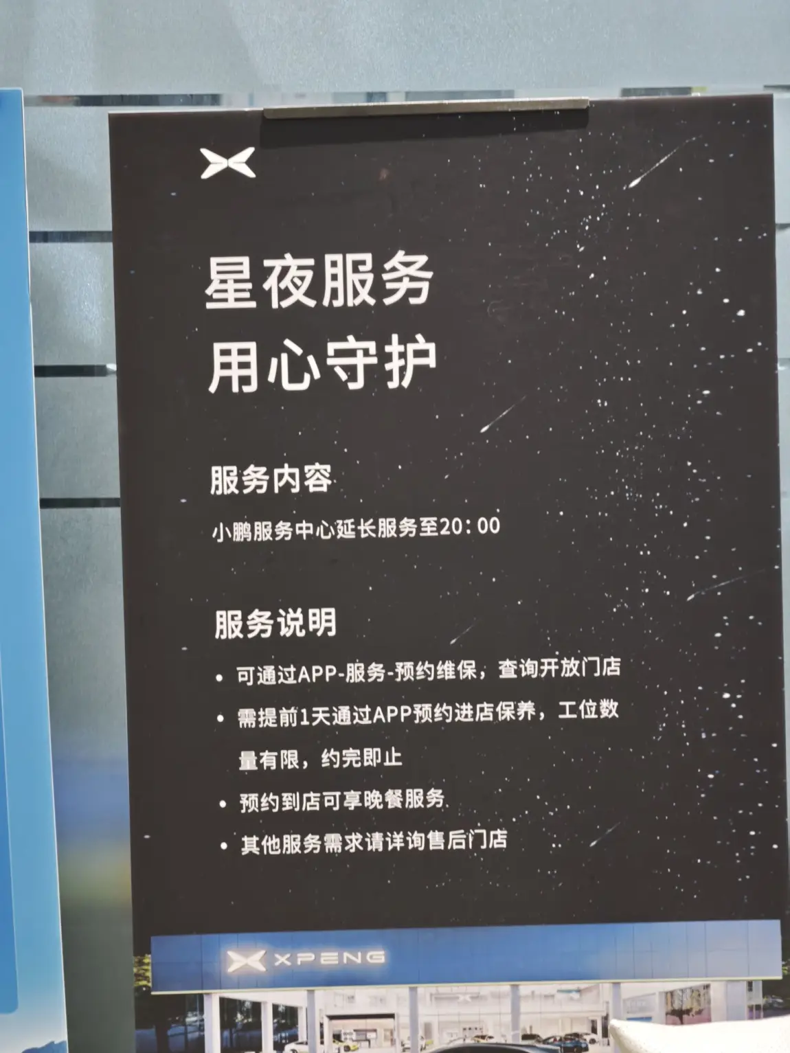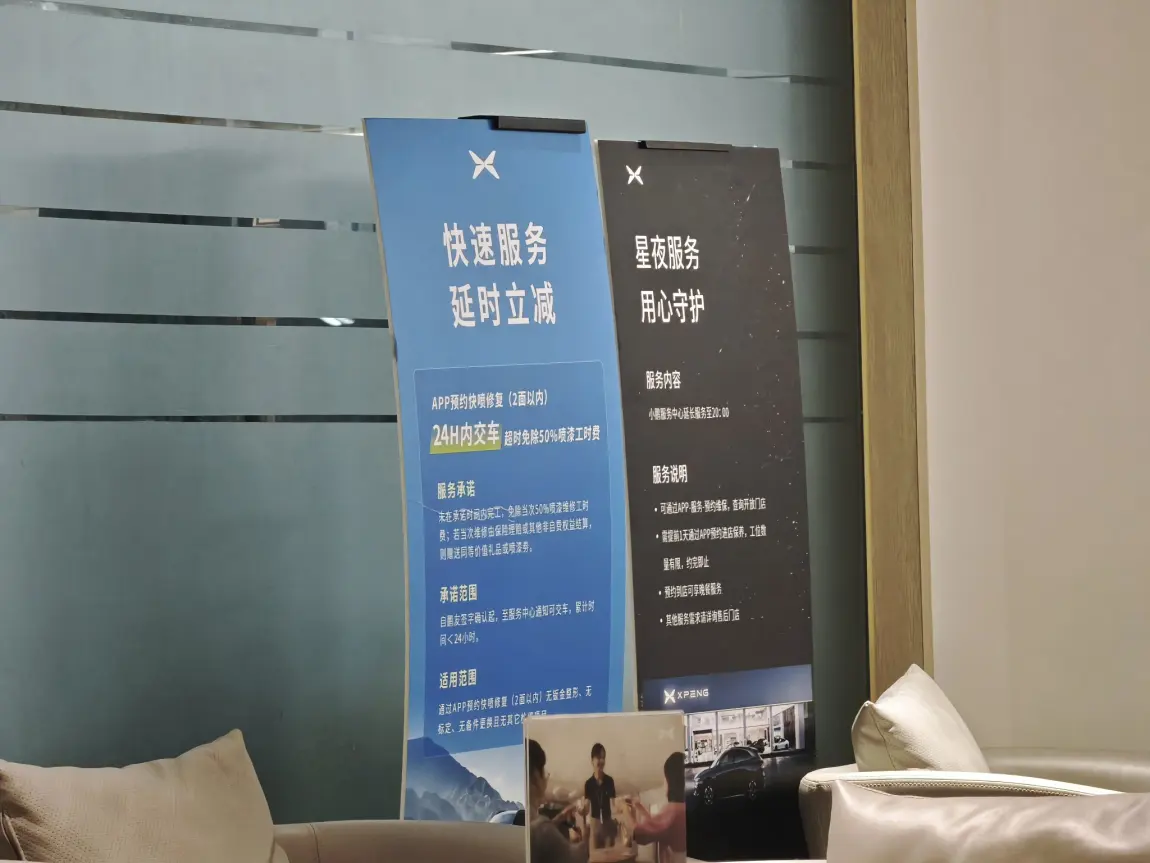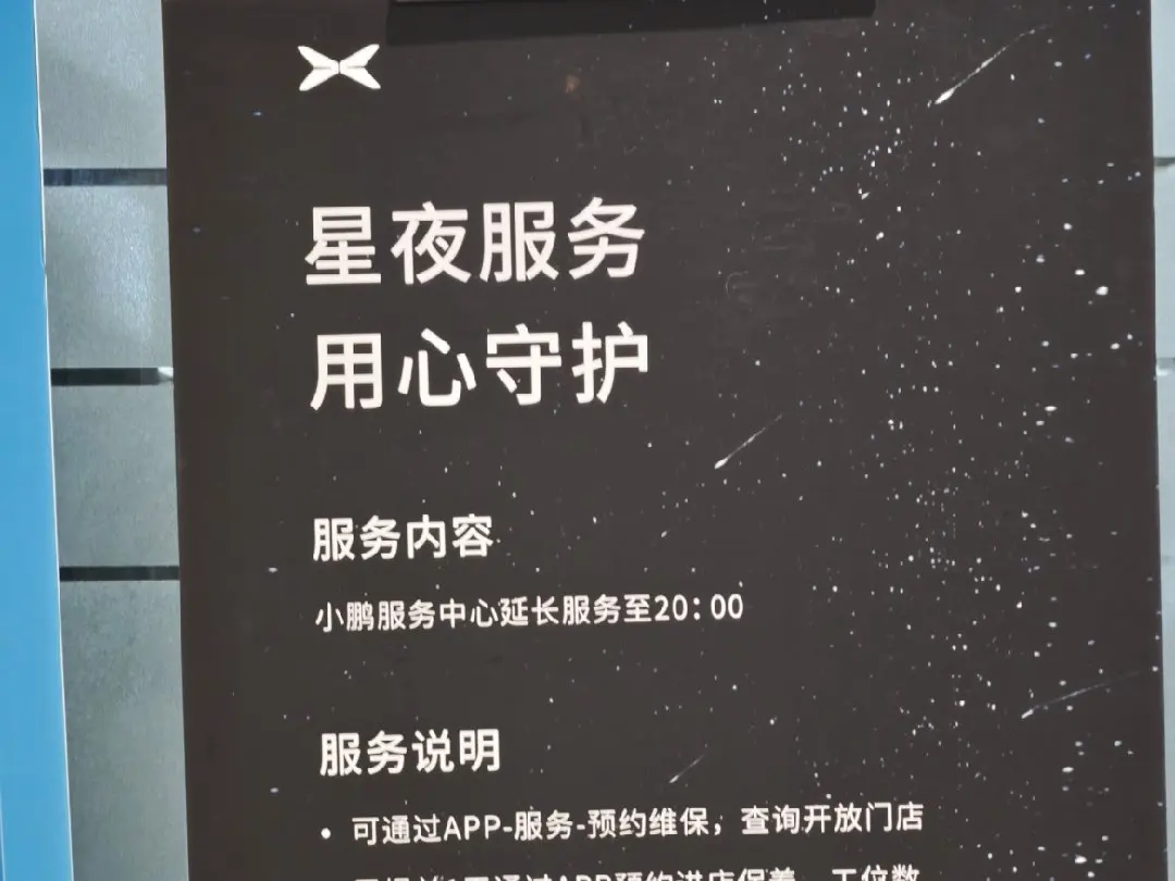 最近成都一下降温了,一秒入冬的感觉。今天下班的时候上车,突然发现多了点不同的声音,原来是提示我胎压过低,本来想着就去随便找家轮胎店充下气的,但是都要等,刚好附近有家小鹏的售后,而且刚好还提供星夜服务,打了电话问了下,说可能是突然降温了,胎压变低的,过去需要等个半小时左右,我就直接过来了,很快就给我搞好了,这个星夜服务真不错呀。而且如果有提前预约的话,过来就不用等位了,还能蹭个饭啊哈哈哈,不过预约好像只能提前一天。天冷了,小鹏这边也是可贴心了,矿泉水都给你加热了,这服务杠杠滴
