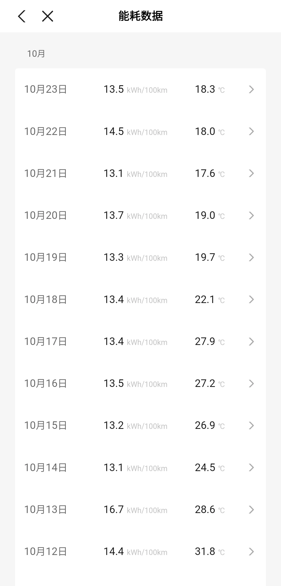 #我的10月用车总结# 驾驶感受 首先动力是足够的,不管是市区通勤还是跑高速,强大的动力在超车时给人的信心是很足的,即使是在高速 120km/h 的速度上进行超车也是没有什么顾虑的。能耗&补能 G9 的能耗总体来说还算满意,不过磷酸铁锂电池确实受温度影响比较大,10℃ 以下和 15℃ 以上能耗差距太多了,截个图给大家感受一下吧。15℃ 以上城区能耗在 13 左右,高速能耗在 19 左右。而 10℃ 以下城区能耗在 16 左右,高速的话能达到 22。速度对于纯电车型来说,也是能耗的一大影响因素,顶着限速跑,限速 120 比限速 100 百公里能高出两度电出来。