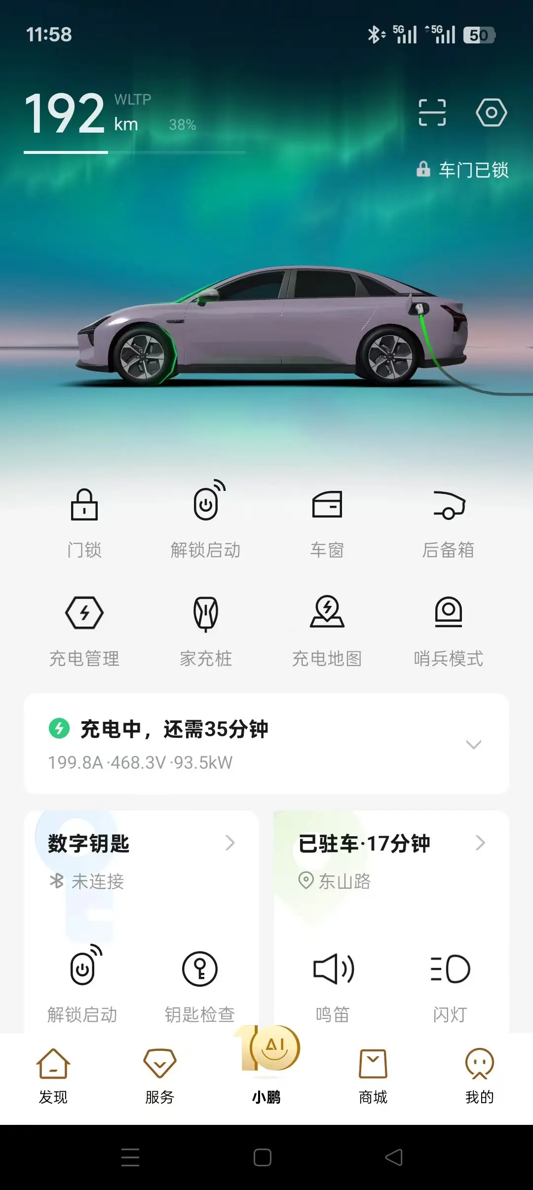 国家电网去充了一次快充,从30%到100%,大概50分钟左右,共话费29元(中午0.6元/度),等下次家里晚上去充,还能更便宜