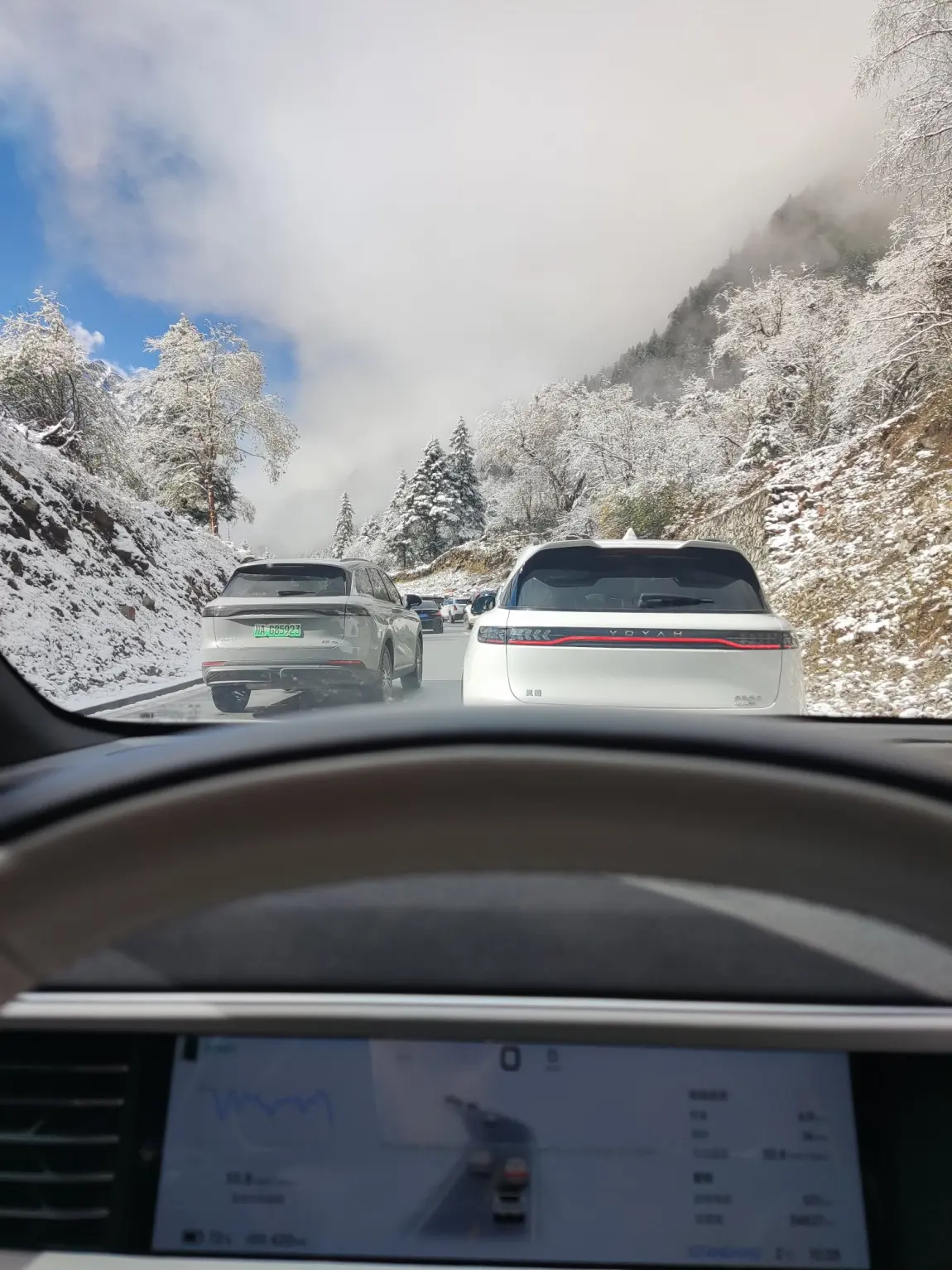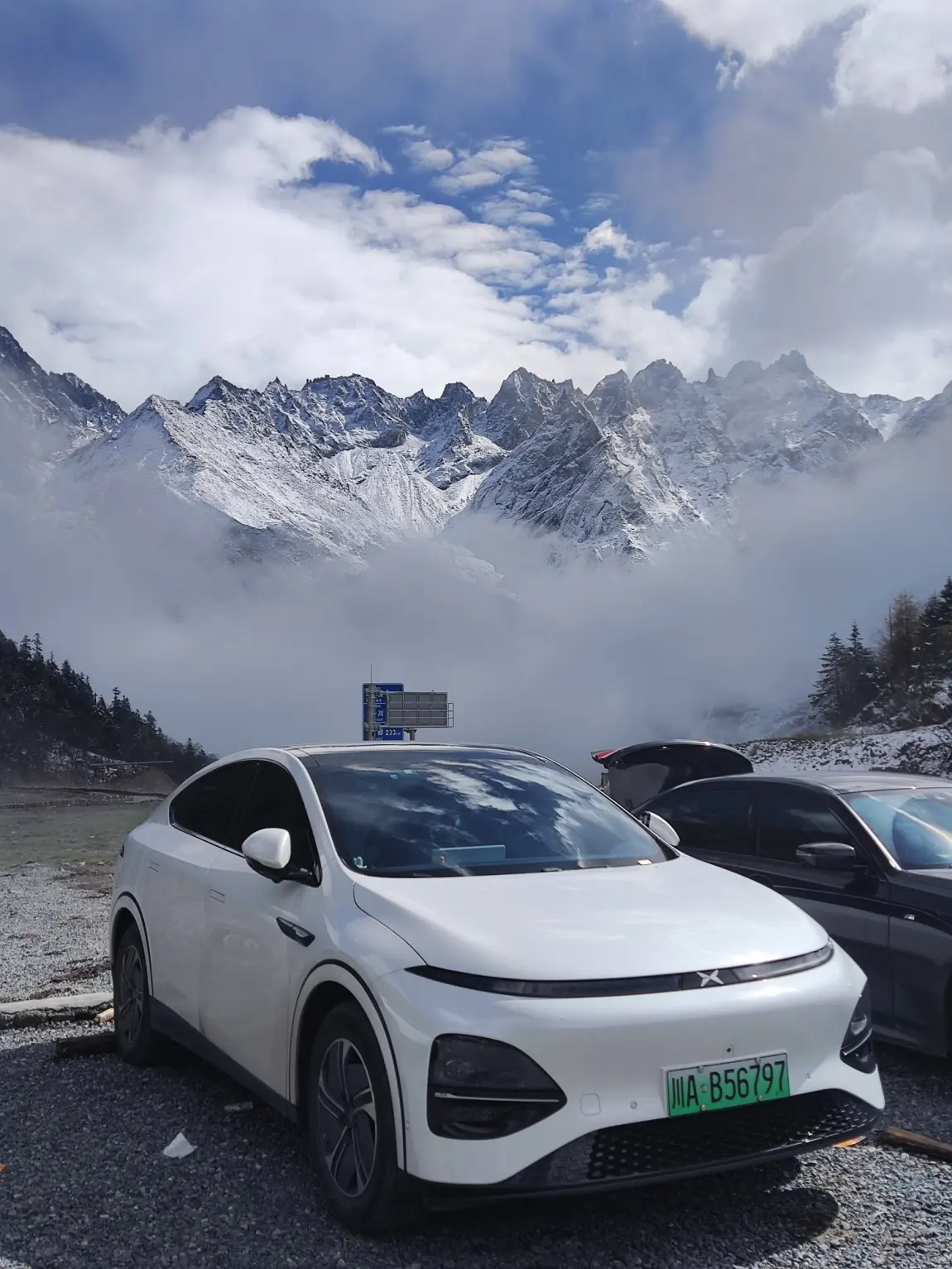 580max,成都出发途径二绕,蓉昌高速。到理县只有35%的电量,实际只跑了240km,可能是因为都是上坡。海拔也从成都的350米上升到1800+