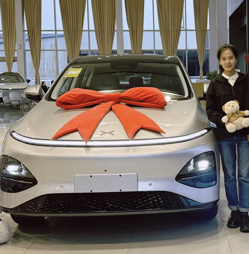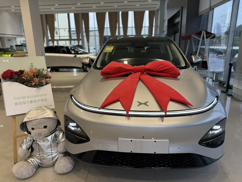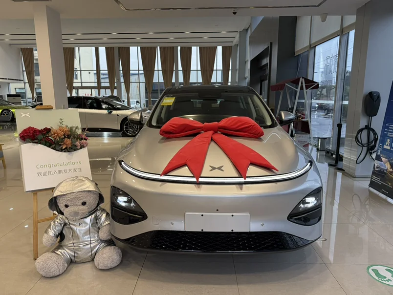 盼了许久,银色小鹏G6终于到手!阳光下车漆泛着细腻光泽,流线型车身越看越耐看,提车时成就感拉满。