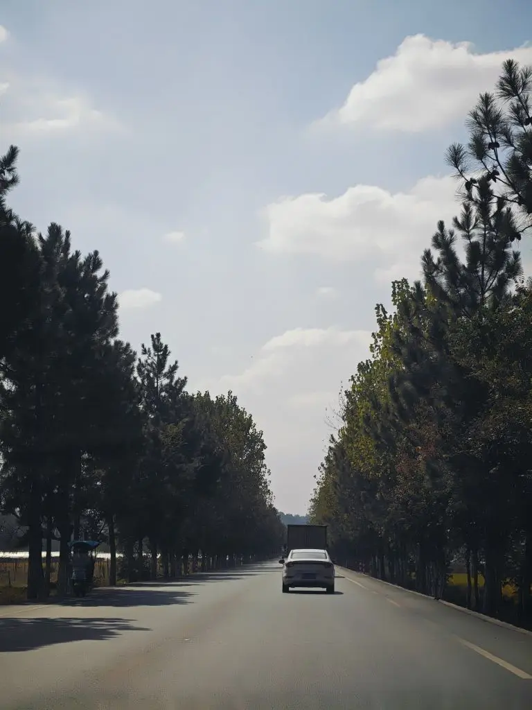 因为秋天的缘故,国道两边的树木已经红黄绿三色交错,稻田也已经染上金黄色。途径万年,还看到了很多特色陶罐,展示这这里的古人类文化。