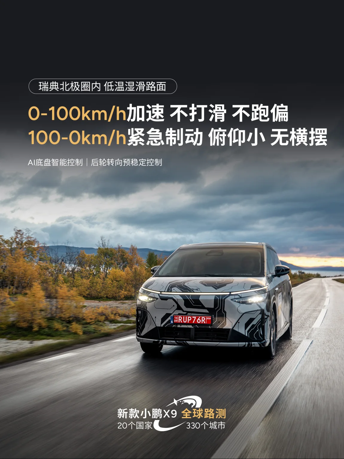 新款小鹏X9「全球道路测试」仍在持续进行中,累计20个国家330个城市,打造值得全球家庭信赖的「家用大7座」。