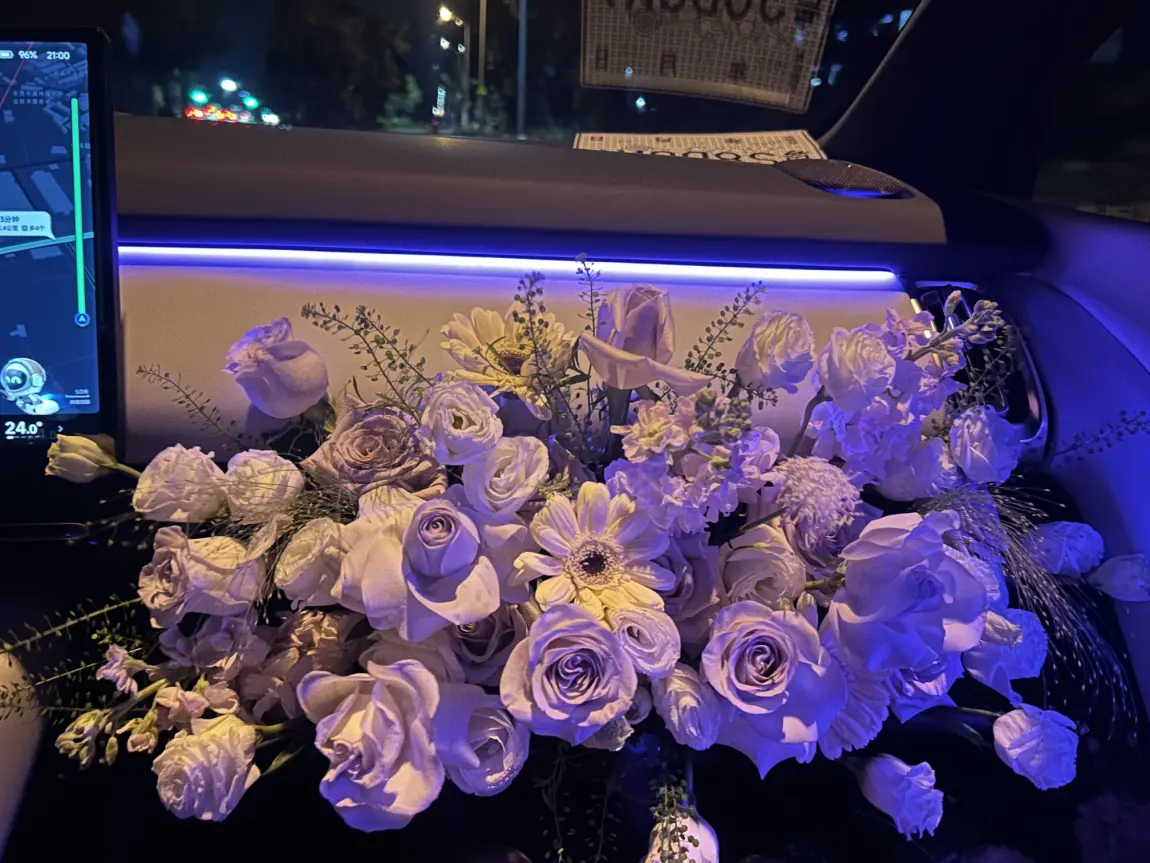 ps:花重金请了花店老板帮忙布置了副驾驶