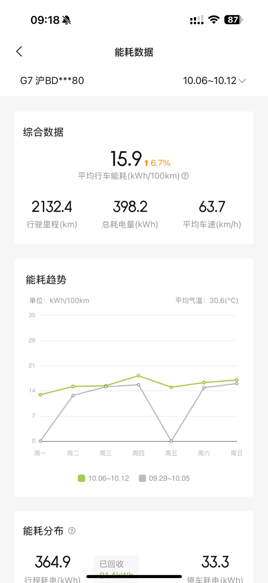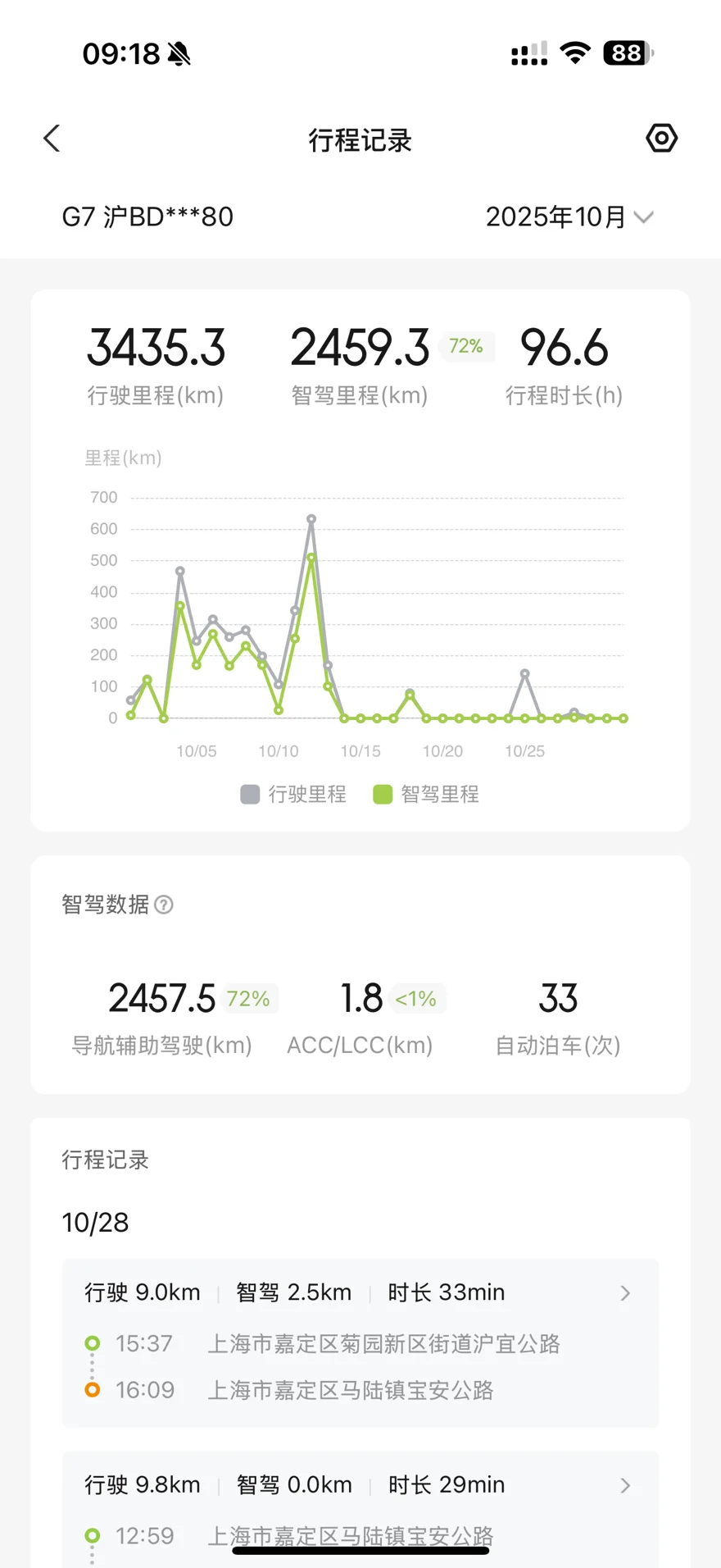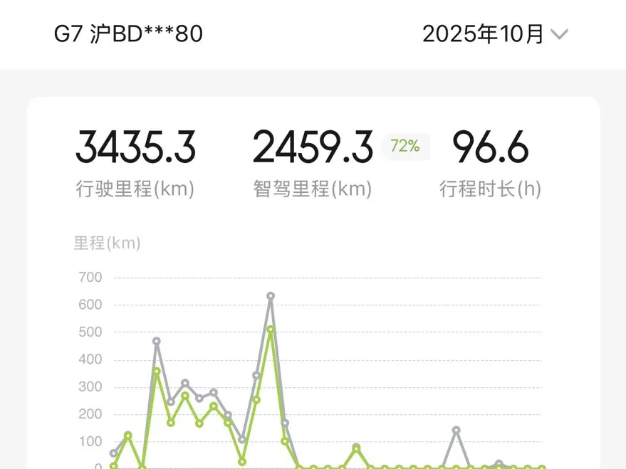 能耗:小鹏的能耗一直让我非常满意,平时在城市道路百公里能耗基本在12、13,即使是大多数走高速,能耗也能控制在15、16左右,最多一次是18,但是我发现用智驾的能耗会比自己开的能耗略高一些。
