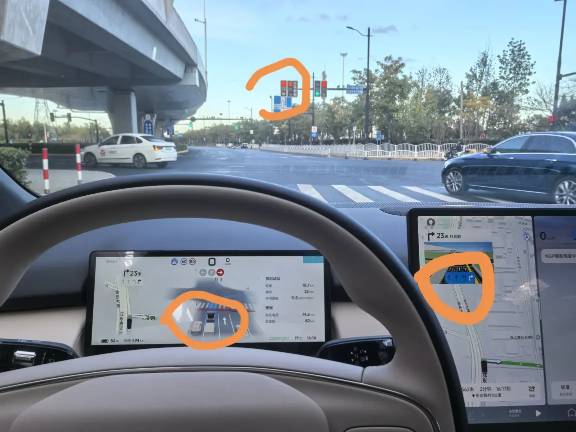 智能辅助驾驶竟然成功识别到可变车道和红绿灯,没有压实线到左右侧车道,当时内心那个地地道道(惊喜)