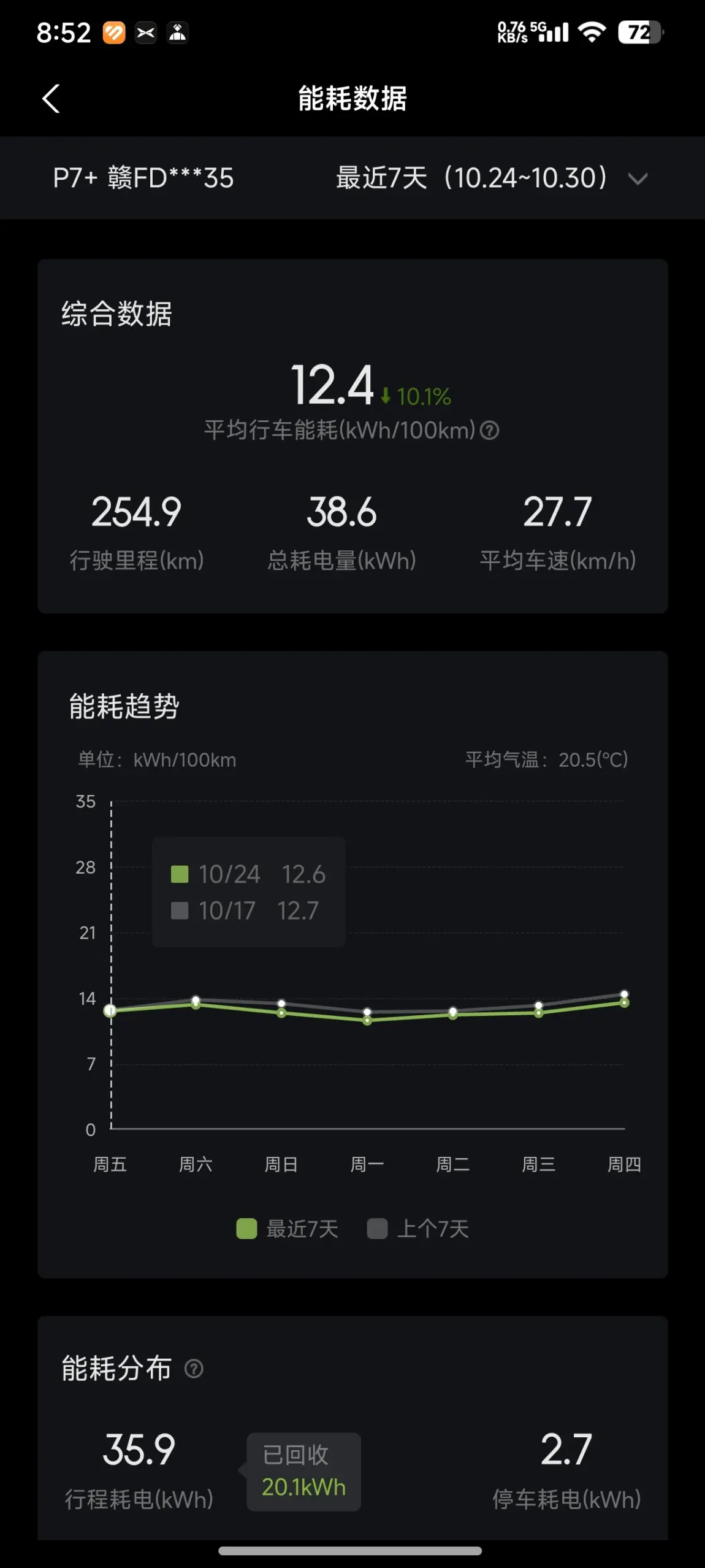 #我的10月用车总结# 10月我的小鹏P7+跑了几千公里,平均电耗12.4kWh,充一次电,电费50元。