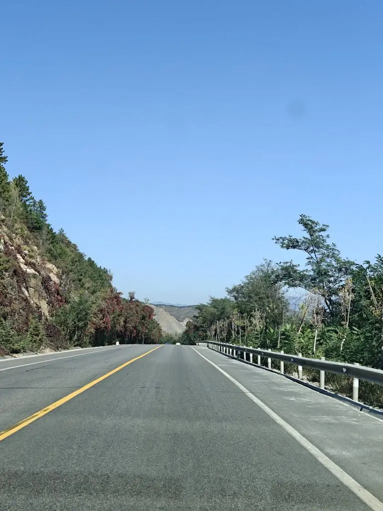继续深入,山野风光愈发壮阔。公路两旁,山峦起伏,植被茂密,偶尔还能看到红色的藤蔓点缀其间,在蓝天的映衬下,格外壮美。开着小鹏G6在这样的公路上驰骋,仿佛与自然融为一体,之前对唐山“工业城市”的固有印象被彻底打破,原来它的山野风光也如此动人。