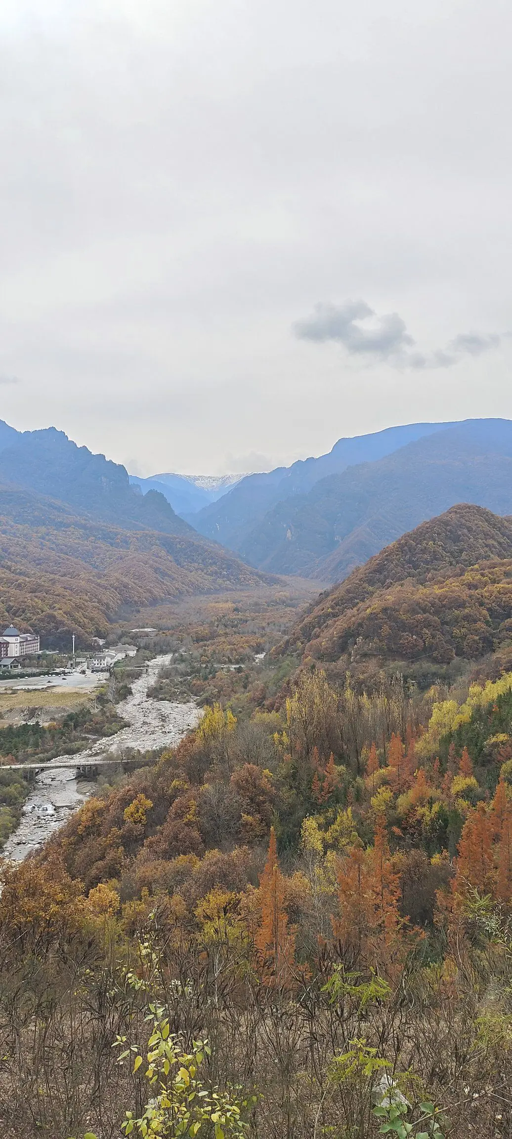 远看太白山积雪,初冬的秦岭,就像上帝打翻了颜料桶。