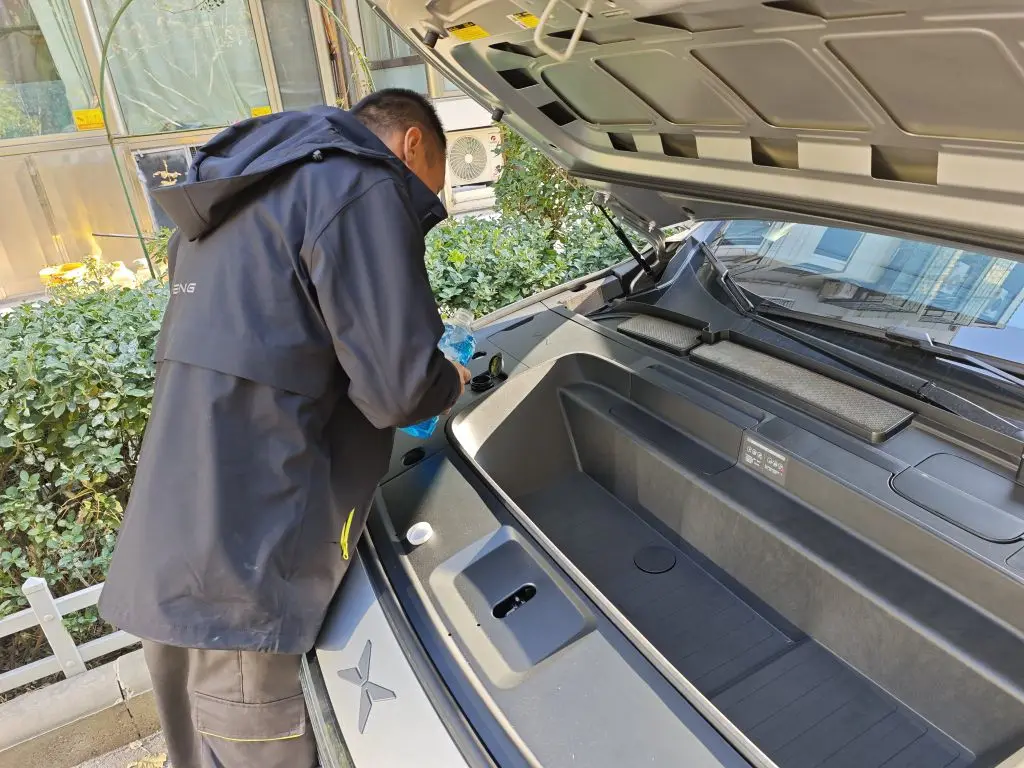 开始以为可能是小鹏合作的第三方,结果来得是小鹏的专业维修人员。维修的非常快,最后师傅还主动询问我油液的问题,免费给我补充上了冬季防冻玻璃水。