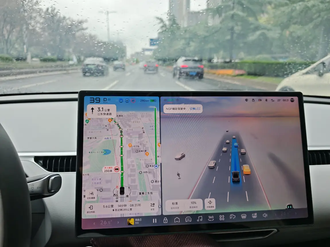 4、NGP是高速通勤“神器”:在快速路和高速上,NGP很大程度上缓解了我的驾驶疲劳。它的车道保持、自动跟车,加减速的时机和力度都模拟得像一个老司机,用起来还是挺安心的,让长途出行变得轻松不少。