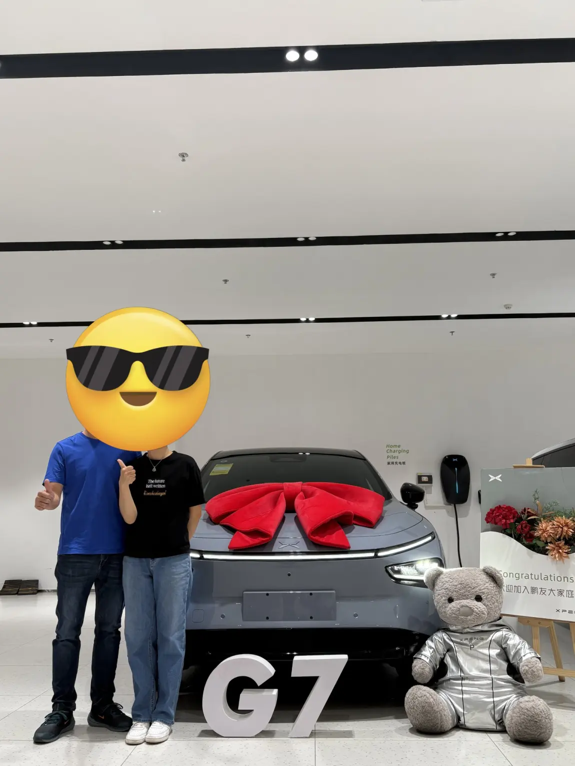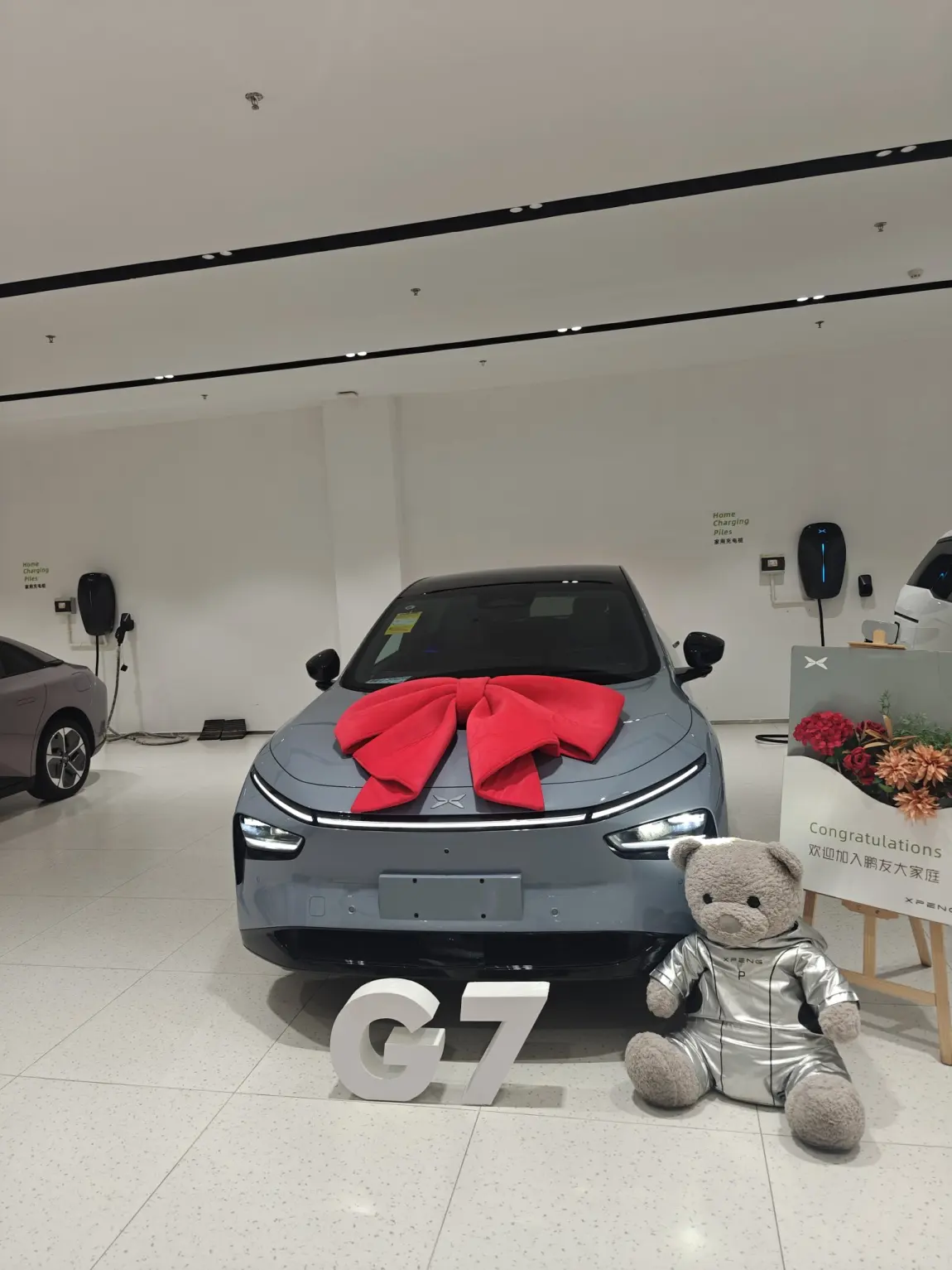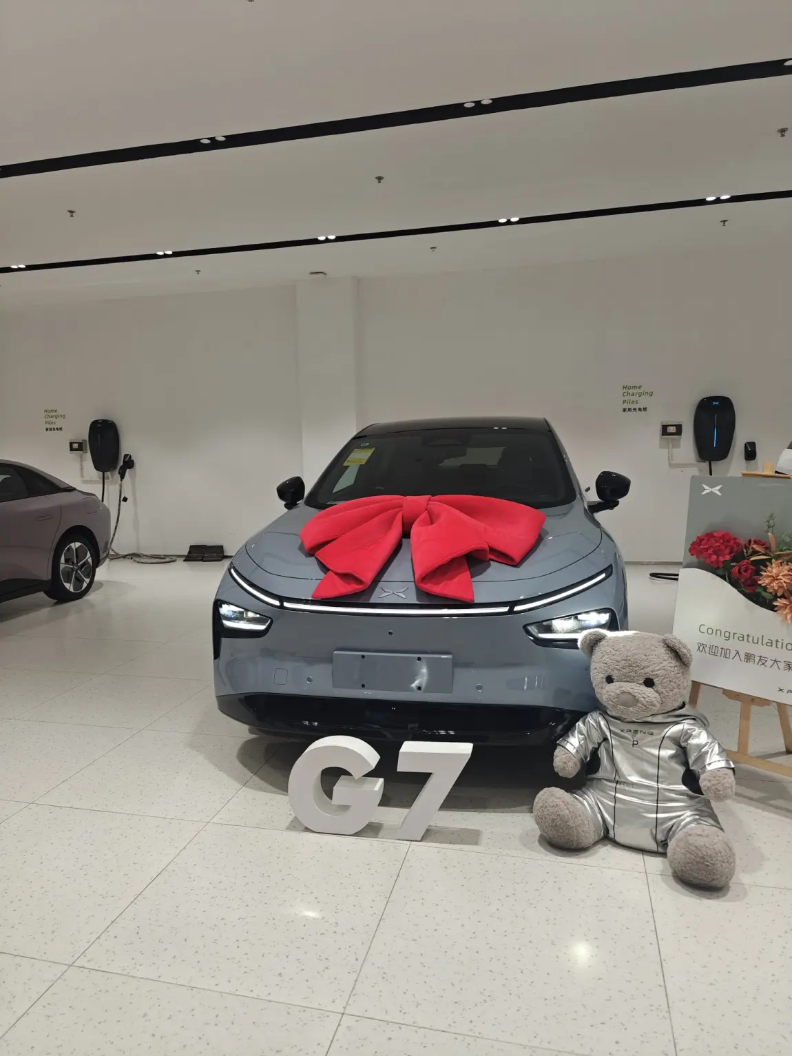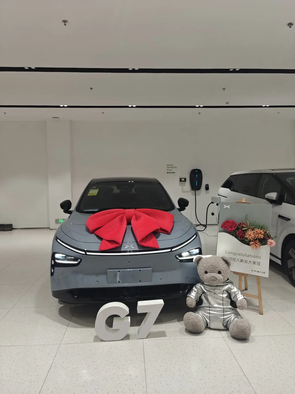 #我的提车作业# 2025年10月20日,一个爱你的日子,早上9点半,我已经去到了海八路交付中心提等了1个月有余的小鹏G7。星昼灰的颜色实车漂亮,定车的时候还未见过实车,确实选对了颜色。空间部分:G7的空间真的太大了,前后排乘坐空间非常大,非常舒服,后备箱感觉超能装。提前完成付款流程,所以提车过程非常的顺利。转了一圈看看没有什么问题,可爱的交付专员介绍完车机大概使用和注意事项之后。我就开着我心爱的小灰灰回家了!