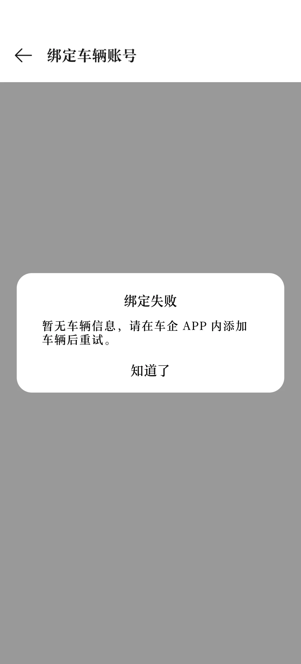 如图,在负一屏绑定卡片,一绑定就说没有车辆信息