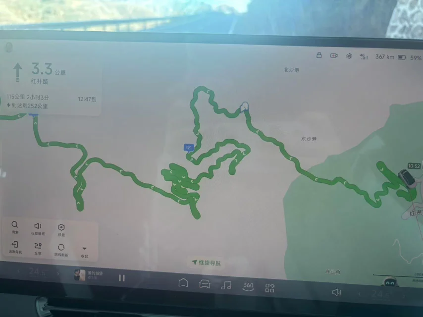 出发前满电出发,开启舒适模式与能量回收高,仪表盘上的能耗数字始终保持在惊喜区间。即便频繁穿梭于接近360度的连续弯道,需要频繁加速减速,百公里能耗也仅稳定在13kWh左右;行驶至开阔观景台路段,平缓路况下能耗更是低至11kWh,下坡路段更是惊喜,长下坡路段更是反向充电,远优于同级别车型。全程往返200公里左右(城区、高速、山路上坡下坡,盘山路段),彻底打破了电车跑山路的能耗顾虑。