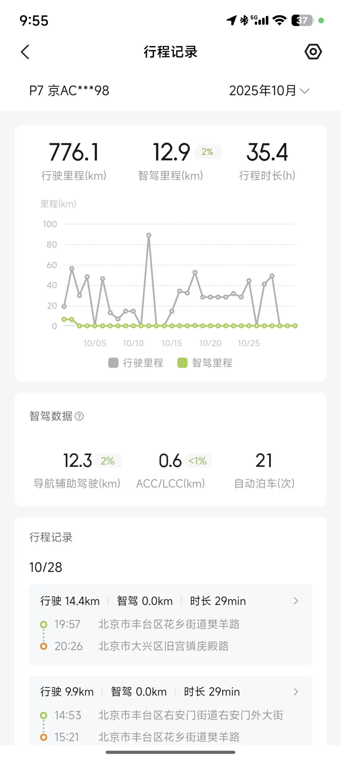 翻了下APP,里面记载我开了776公里,主要是上下班通勤往返,每天来回要30多公里,当然21次自动泊车真的是救了我这个菜鸟的命哈哈