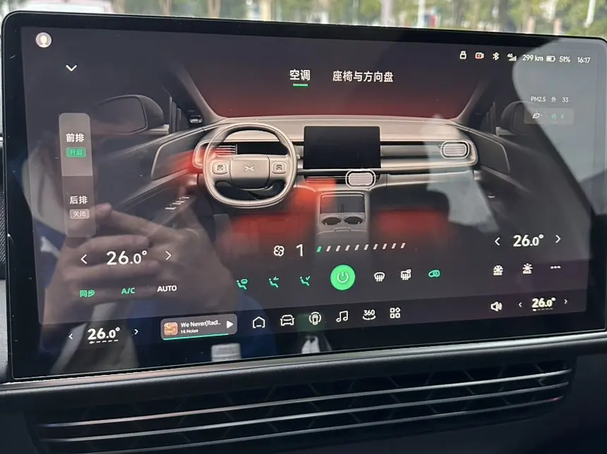 • 车窗起雾时,喊“你好小P,打开车窗除雾”,或手动开启前挡除雾+外循环+AC,后挡及后视镜加热一键开启。