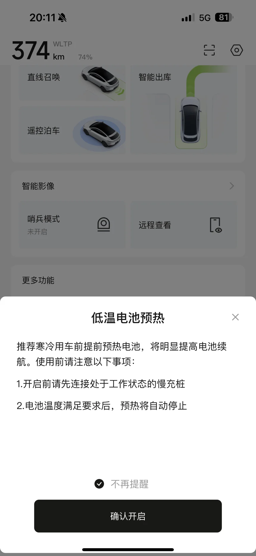 电池预热必须安排上!出发前10-20分钟,用小鹏APP远程开“电池预热”,磷酸铁锂版连充电桩预热更省电,电耗能减3-5%。这样不仅上车暖和,电池进入最佳状态,起步也不费电。