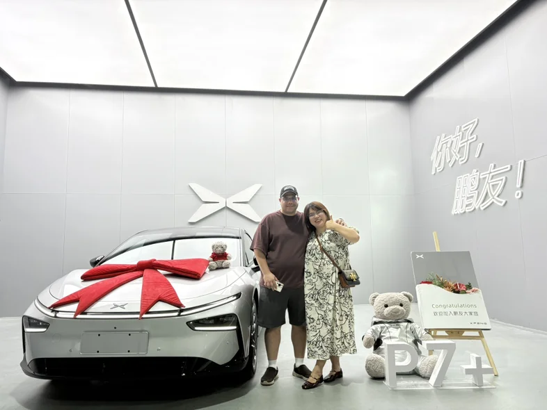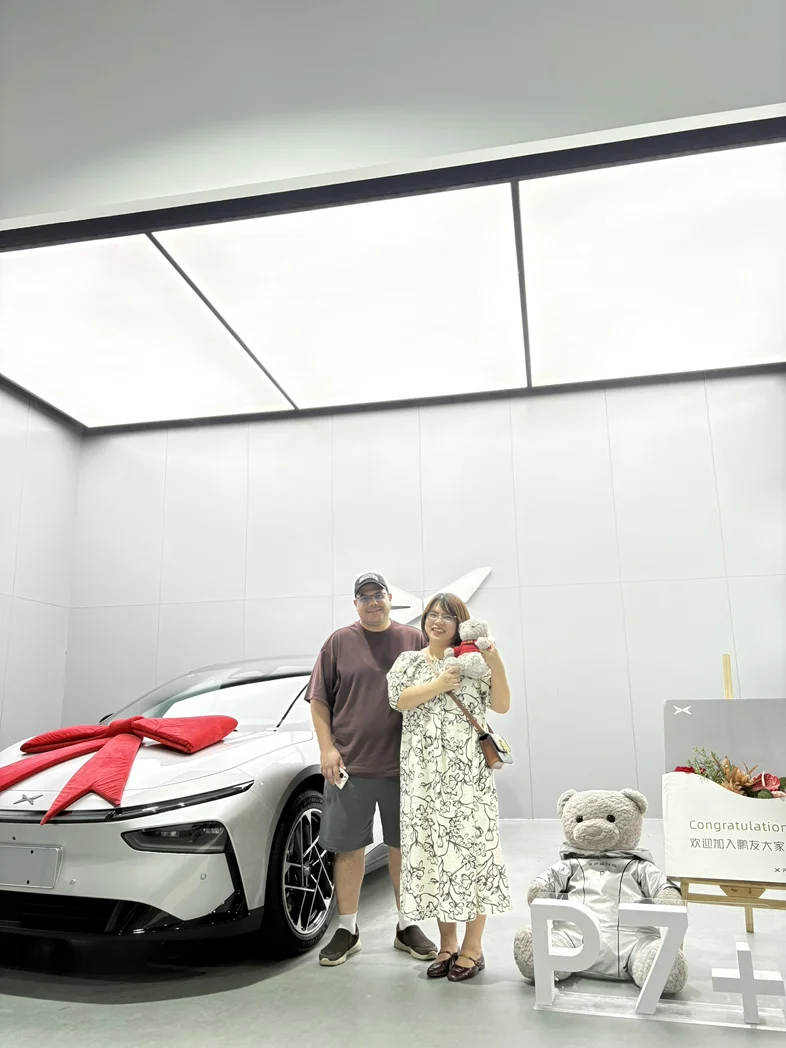 #我的提车作业# 老公看了好久的国产电车,他被小鹏的科技感和智驾所吸引!即便系统是中文的,他也坚持选购p7+!开车也正好练习他的中文!作为家属不得不说,最吸引我的就是后座空间和舒适的乘坐体验,点100个赞👍!