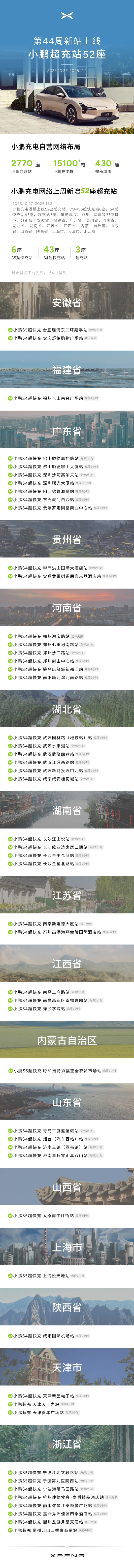 2770+站 | 2025年第44周上线小鹏超充站52座