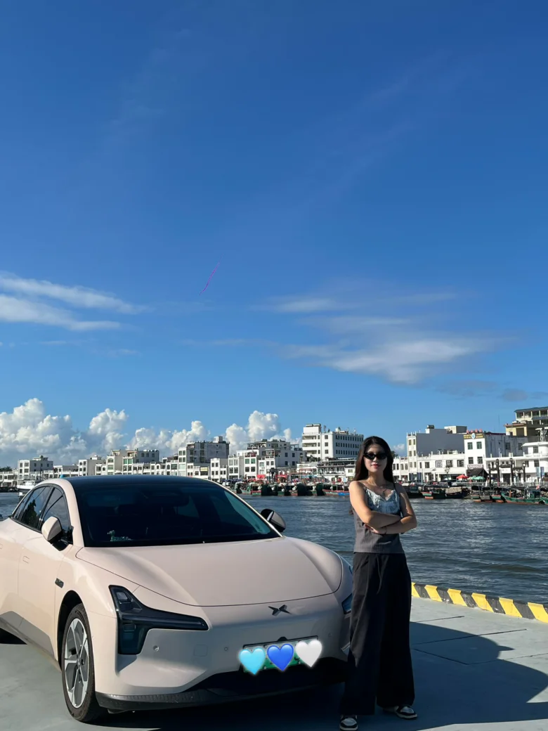 当然啦,提车这么久肯定不是只去玩一次!车车和海边也太适配了吧!!蓝色天空蓝色大海白色建筑and粉色车车,完美搭配!