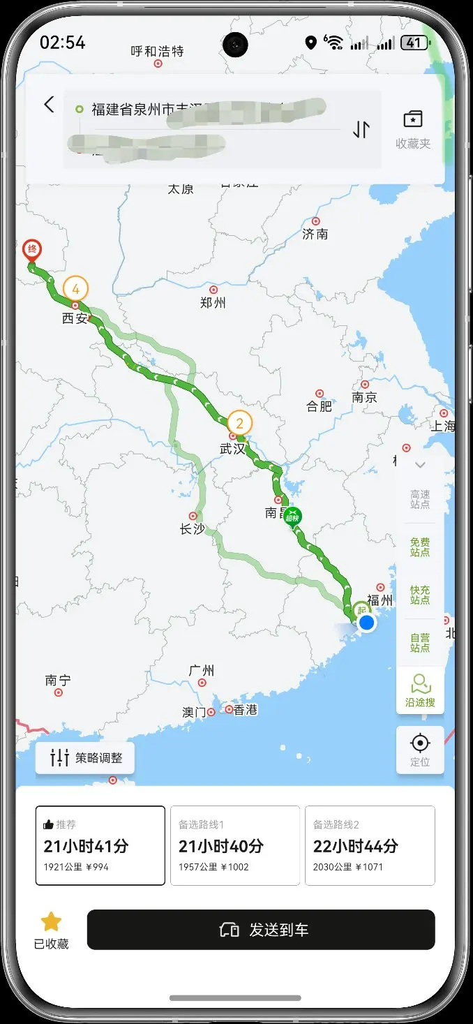 - 充电体验: 我的路线是G72泉南高速转G70福银高速,当前全国高速服务区充电桩覆盖率已非常高。我的策略是: