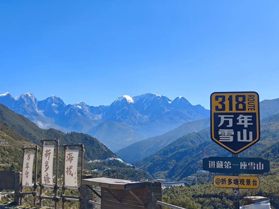 游玩了一个小时左右,继续出发下一站“提弄秘境”看贡嘎雪山日照金山,导航可以直接搜提弄秘境,路过新都桥服务区太多车了,所以没停直接走了,进入248国道有一段路非常的漂亮,两侧都是树木