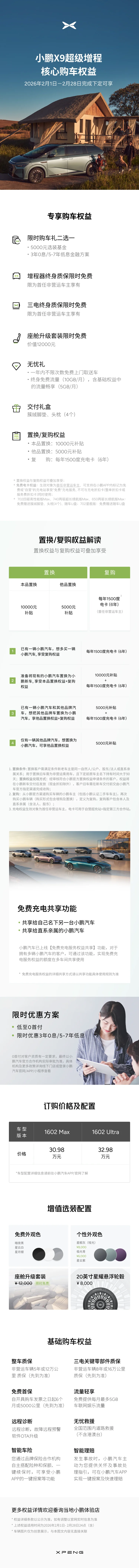 小鹏X9超级增程核心购车权益