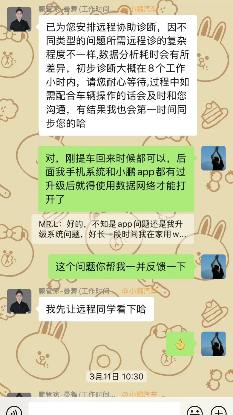 专属管家式对接:每位车主都有“多对一”鹏管家服务群,日常用车疑问、保养预约等都能快速得到回应;400客服还支持企微对接,复杂问题会主动跟进,直到彻底解决,实现全流程省心服务。