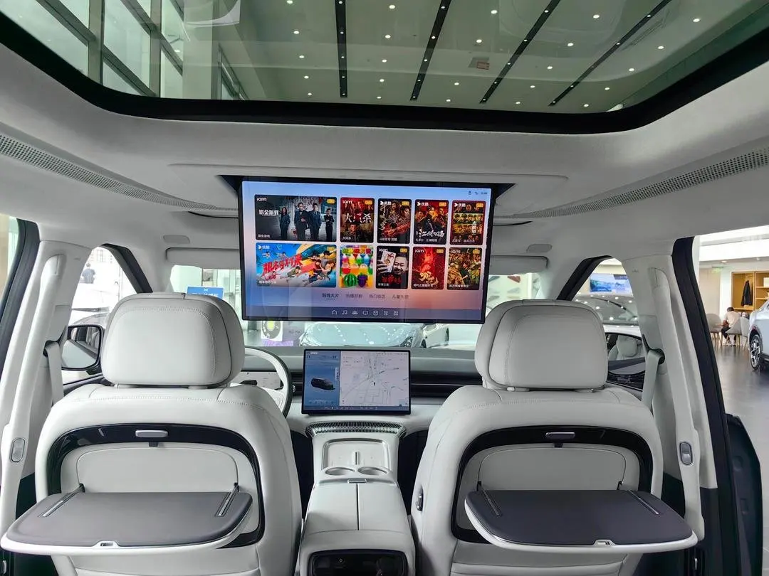 X9的二排有个超大的21.4英寸家庭娱乐生态屏,简直是娃的专属影院!体验了一下,清晰、流畅,角度能多方面调节,配合大座椅,出行不遭罪。