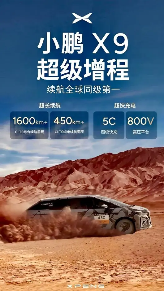 X9的混动版综合续航能达到1602公里!纯电续航也有452公里,平时城市通勤完全当纯电车开,一周充一次电就够了。告别里程焦虑,节假日高速出行再也不必各种抢充电桩了。。。