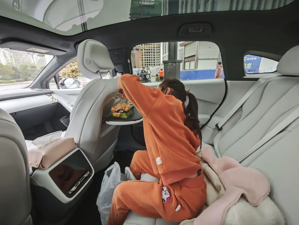 3⃣孩子经常出去上课赶时间,来不及吃早饭,就打包在车里小桌板上吃,时间不够,也不用慌慌张张、连滚带爬。