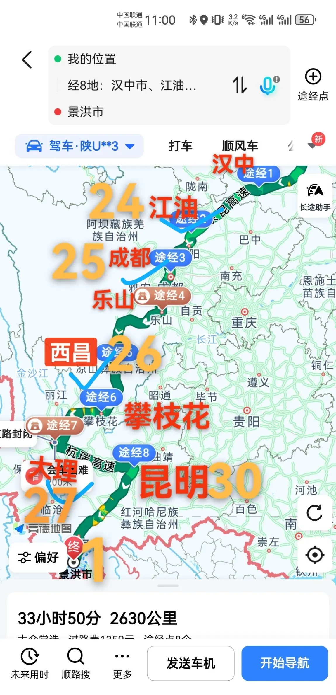 西安→西双版纳2500km自驾游(第一天)