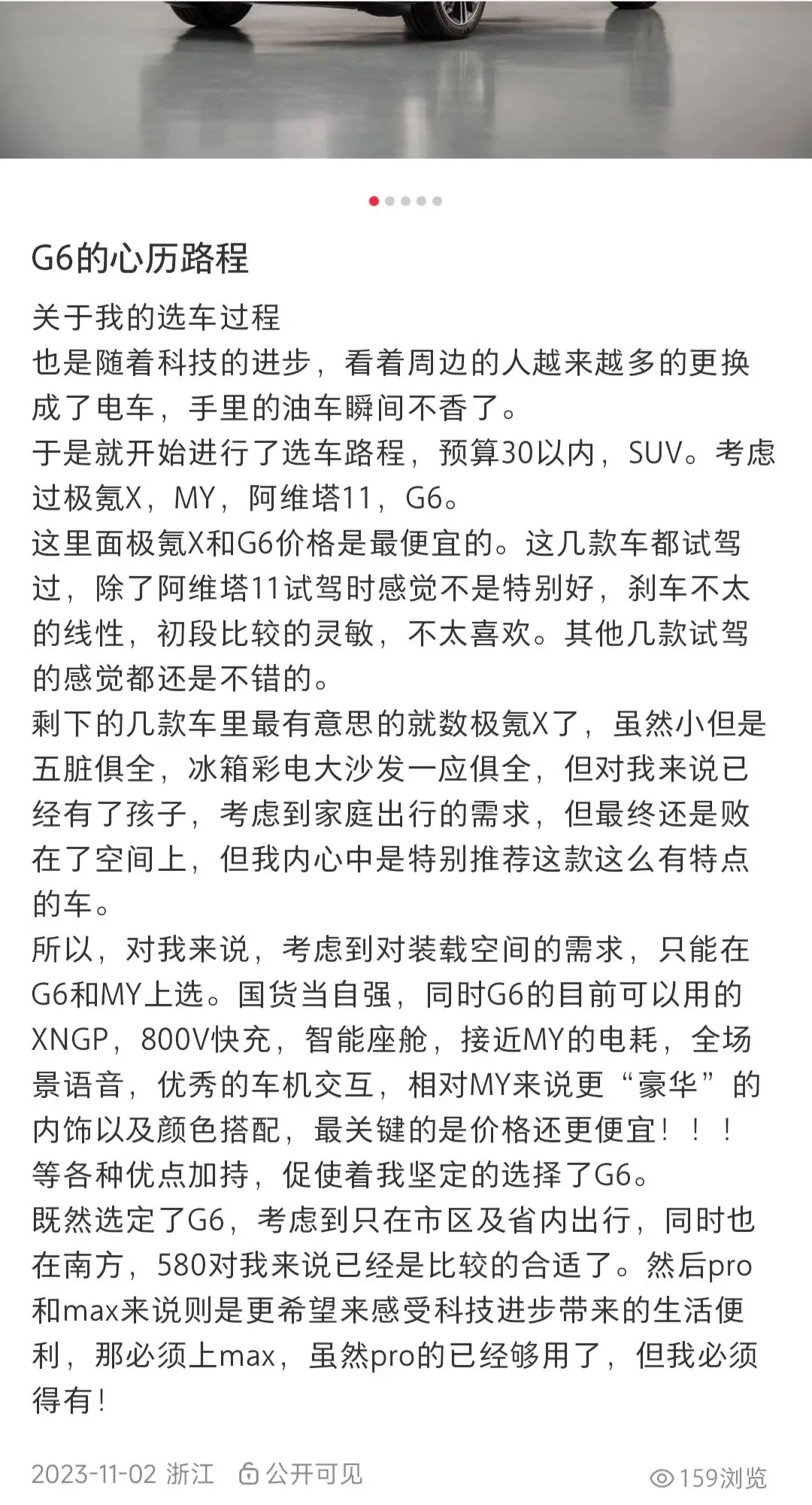 回想当时换车纠结了小半个月:极氪X的“冰箱彩电”够花哨;MY的操控顺手,但G6的800V快充和XNGP智能驾驶,偏偏戳中了我这个“科技党”的痒点。最终敲板订下580MAX版,如今总里程超过了5万公里,每次通勤看它自动跟车、精准识别路口,都暗喜当初的选择没出错。